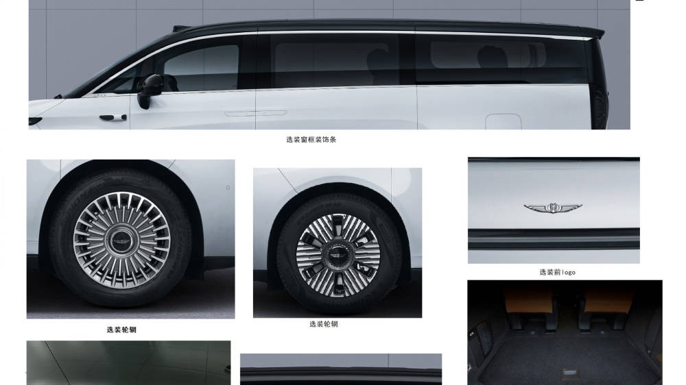 其余設計則延續家族風格:熏黑立柱與車頂、短前艙、雙層式燈光組;配備隱藏式電動門把手、電動滑移后門;輪轂提供 18 英寸和 20 英寸兩種尺寸可選,部分版本還可加裝電動側踏板。