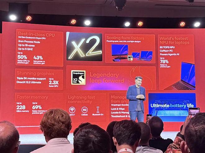 高通稱,全新驍龍X2 Elite Extreme驍龍X2 Elite是目前最快、性能最強(qiáng)大、能效最高的Windows PC處理器,“足以改寫行業(yè)格局”。