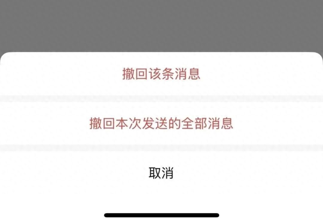現(xiàn)在,微信可以一次性撤回本次發(fā)送的全部消息(包括多選轉(zhuǎn)發(fā)、批量發(fā)送的圖片視頻和文件)。以前,一條條撤回,匆匆忙忙連滾帶爬;現(xiàn)在,一次性撤回,從從容容游刃有余。