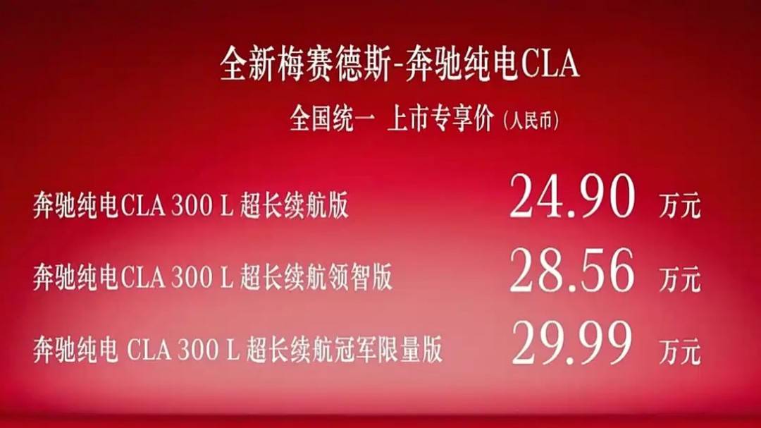 11月5日,全新梅賽德斯-奔馳純電CLA正式上市,新車共推出3個配置版本,售價區間為24.9萬-29.99萬元。這款基于全新MMA純電平臺打造的車型,以866公里超長續航、11個安全氣囊標配以及與Momenta聯合研發的L2+級智能駕駛輔助系統,展現了奔馳在電動化時代的全新思考。