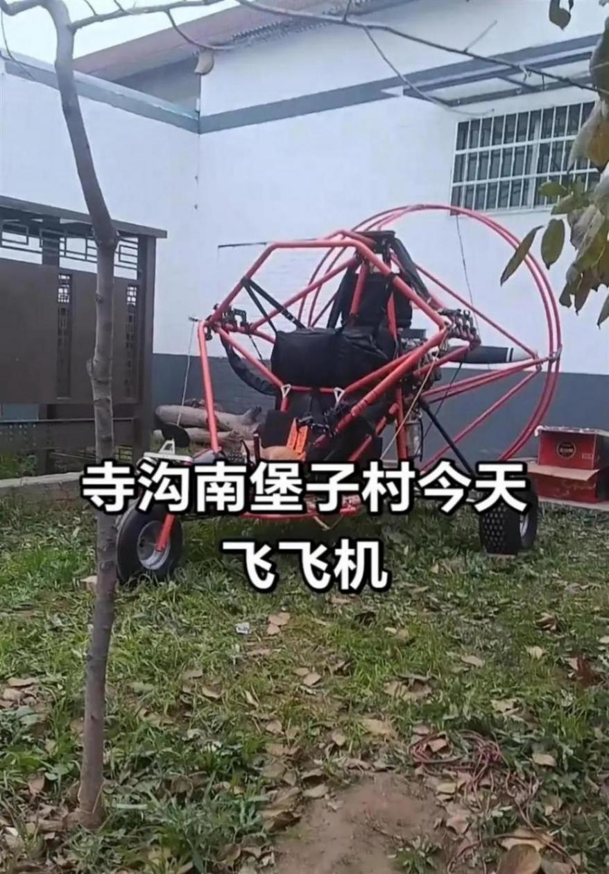 11月5日,銅川市耀州區錦陽路街道寺溝村的空氣里,除了喜慶的鞭炮聲,還多了陣陣發動機的轟鳴!村民們擠在路邊踮腳張望,只見一架帶著滑翔傘的奇特設備,在數十米高空穩穩盤旋,鐵架包裹的機身下裝著三個輪子,背部的發動機帶著葉片飛速轉動,轟鳴聲老遠就能聽見。這可不是什么專業表演,而是村民小王結婚的專屬助興節目——他朋友正駕駛著他親手打造的“輪式動力傘”,用最酷炫的方式為婚禮添彩。