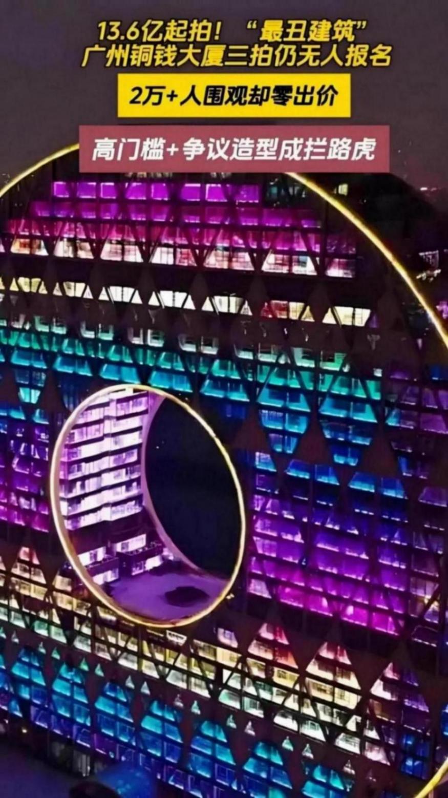 “最丑建筑”銅錢大廈拍賣,無人報名