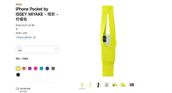 今天下午,蘋果官方宣布,ISSEY MIYAKE攜手蘋果正式推出iPhone Pocket,短款售價1299元,長款售價1899元。