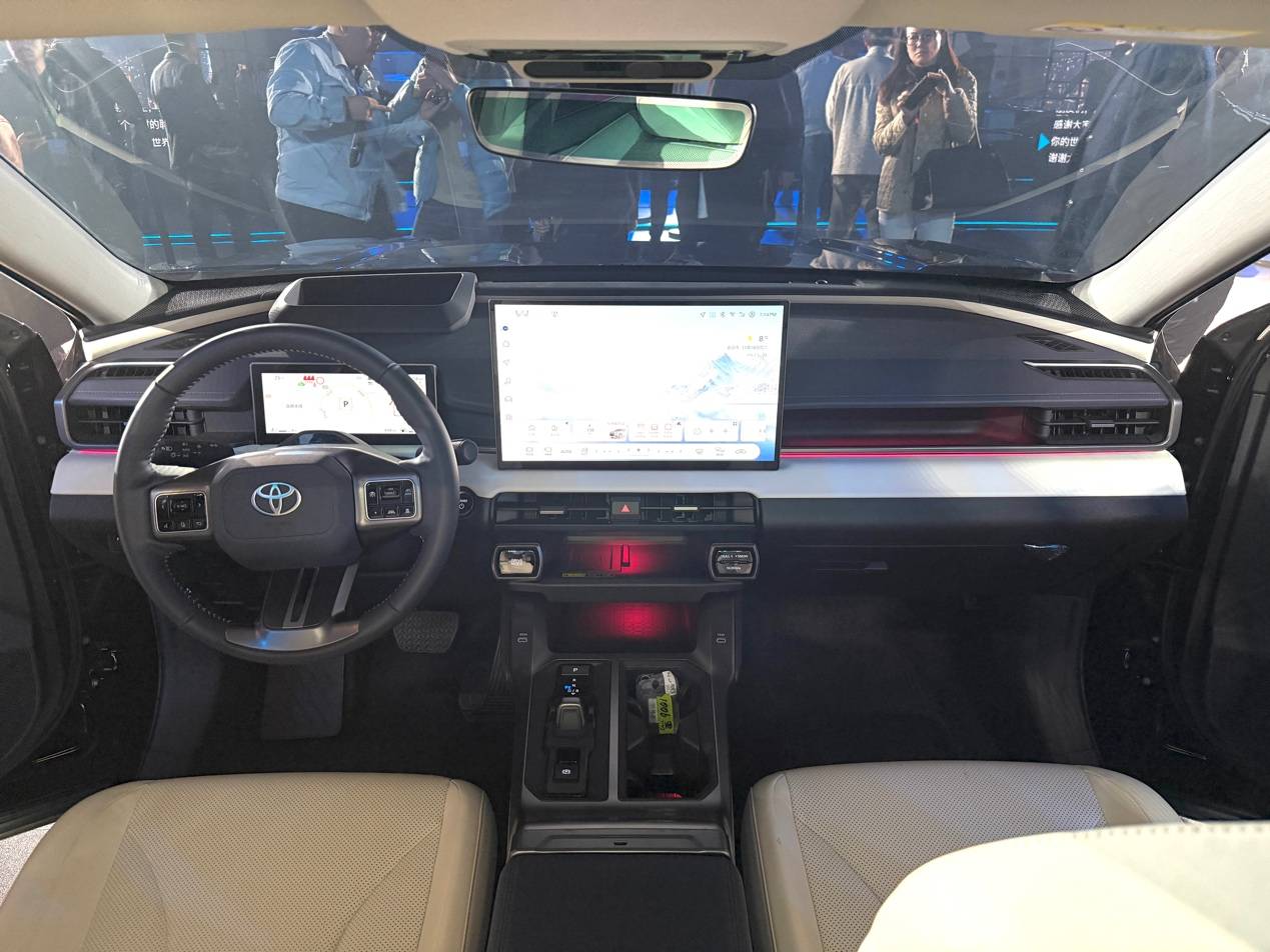 內飾設計延續了外觀的風格,整體造型也很是硬朗,平直的中控臺搭配大尺寸的按鍵,力量感十足,換擋桿由傳統的樣式變為小撥片的設計,并在前方設計了雙層的儲物空間,內部集成了無線充電和電源,可以說各功能區域劃分還是很明顯的,此次全新車型加入了大尺寸中控屏和HUD,這也代表著在智能化方面全新RAV4榮放有著全面的升級,15.6英寸的中控屏采用了SA8155P的芯片,在語言控制,車機流暢度上都有不錯的表現,手機互聯方面集成了CarPlay、HiCar、CarLink,覆蓋了大部分主流手機,在內飾顏色上提供黑、白兩款配色。