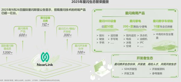 近日,艾瑞咨詢發布了《星閃2025技術躍升與生態爆發》專題報告。報告顯示,2025年,搭載星閃技術的終端產品出貨量突破1億臺,國際聯盟成員超1200家,商用產品累計已達600+款,芯片模組開發板超300款。