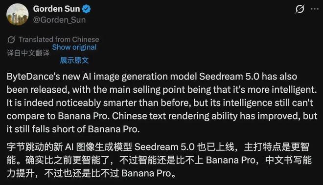 有網(wǎng)友認(rèn)為,Seedream 5.0 Preview的智能水平、中文能力有提升,但都比不上Nano Banana Pro。